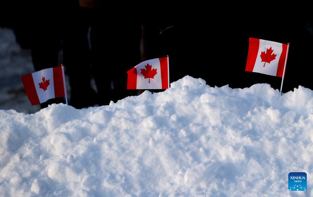 Photo taken on Feb. 6, 2026 shows Canadian flags during the opening ceremony of Canada's new consulate in Nuuk, the capital of Greenland, Denmark. On Friday, France and Canada each opened a consulate in Nuuk. (Xinhua/Li Ying)