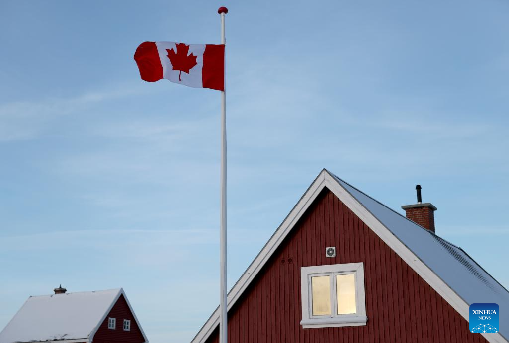Photo taken on Feb. 6, 2026 shows a Canadian flag outside Canada's new consulate in Nuuk, the capital of Greenland, Denmark. On Friday, France and Canada each opened a consulate in Nuuk. (Xinhua/Li Ying)