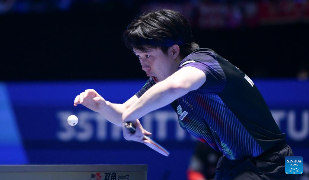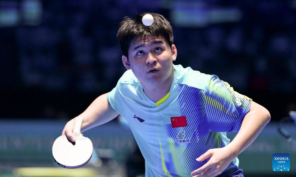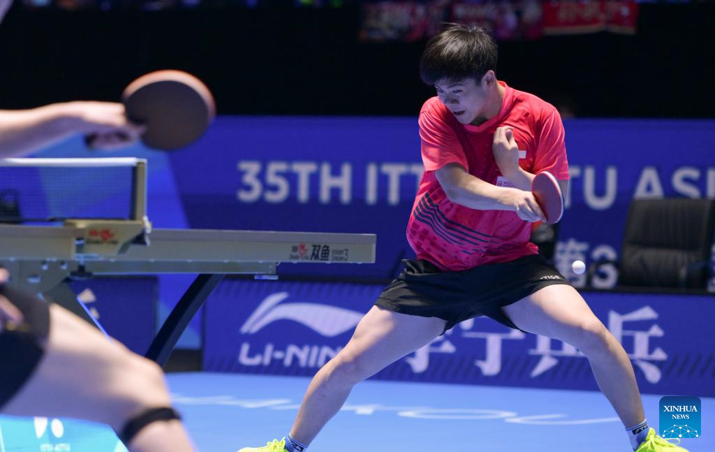Lin Shidong hits a return during the men's singles round of 16 match between Lin Shidong of China and Pal Akash of India at the ITTF-ATTU Asian Cup Haikou 2026 table tennis tournament in Haikou, south China's Hainan Province, Feb. 7, 2026. (Xinhua/Yang Guanyu)