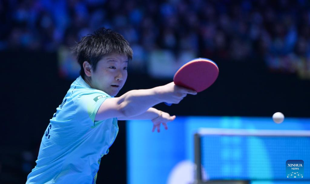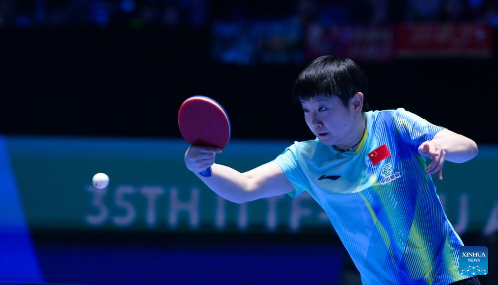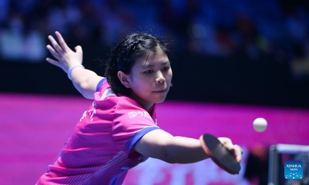 Sun Yingsha hits a return during the women's singles round of 16 match between Sun Yingsha of China and Kim Nayeong of South Korea at the ITTF-ATTU Asian Cup Haikou 2026 table tennis tournament in Haikou, south China's Hainan Province, Feb. 7, 2026. (Xinhua/Yang Guanyu)