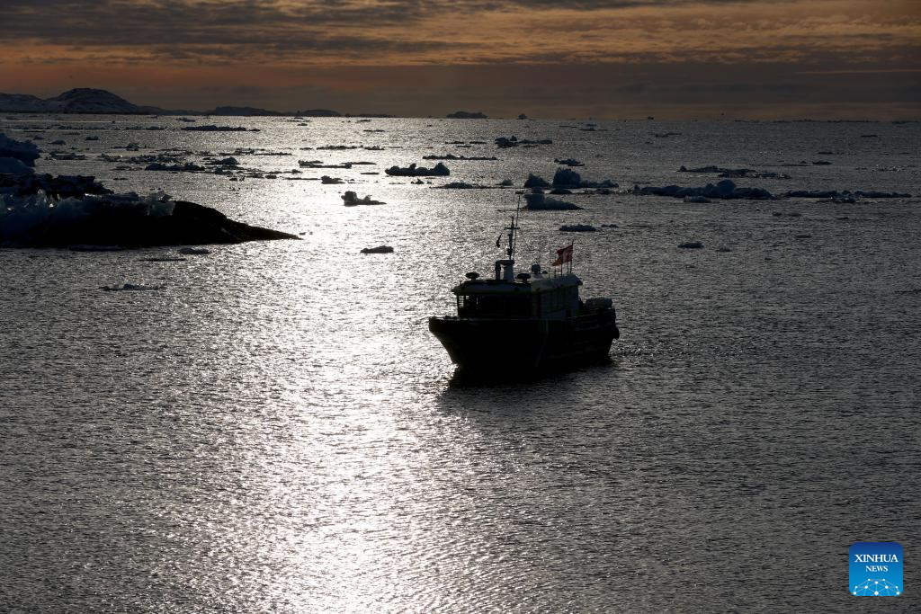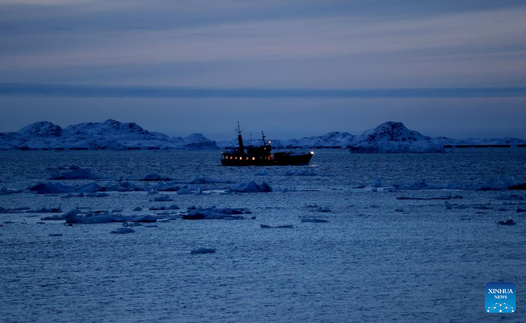 A ship sails on the sea near Nuuk, Greenland, an autonomous territory of Denmark, Feb. 6, 2026. (Xinhua/Li Ying)