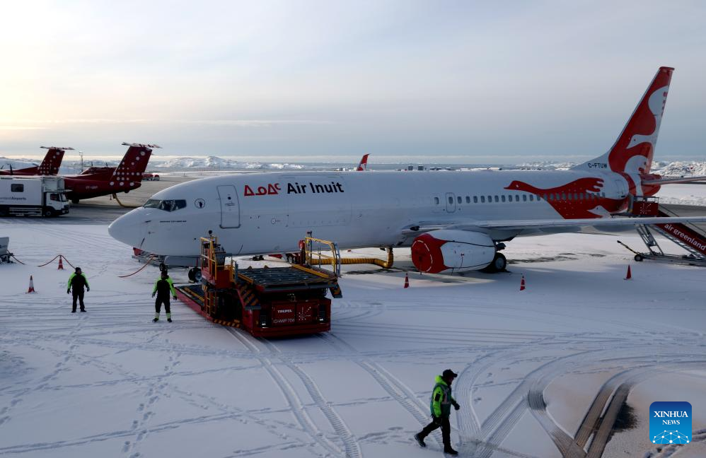An Air Inuit plane parks at the Nuuk Airport in Nuuk, Greenland, an autonomous territory of Denmark, Feb. 6, 2026. (Xinhua/Li Ying)