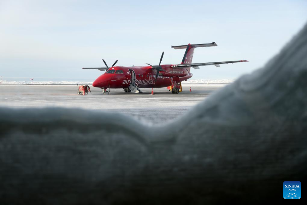 A plane parks at the Nuuk Airport in Nuuk, Greenland, an autonomous territory of Denmark, Feb. 6, 2026. (Xinhua/Li Ying)