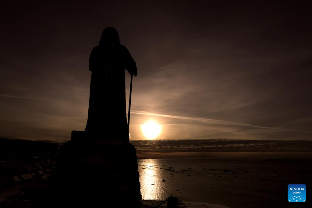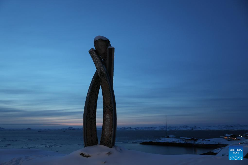 This photo taken on Feb. 6, 2026 shows a sculpture at sunset in Nuuk, Greenland, an autonomous territory of Denmark. (Xinhua/Li Ying)