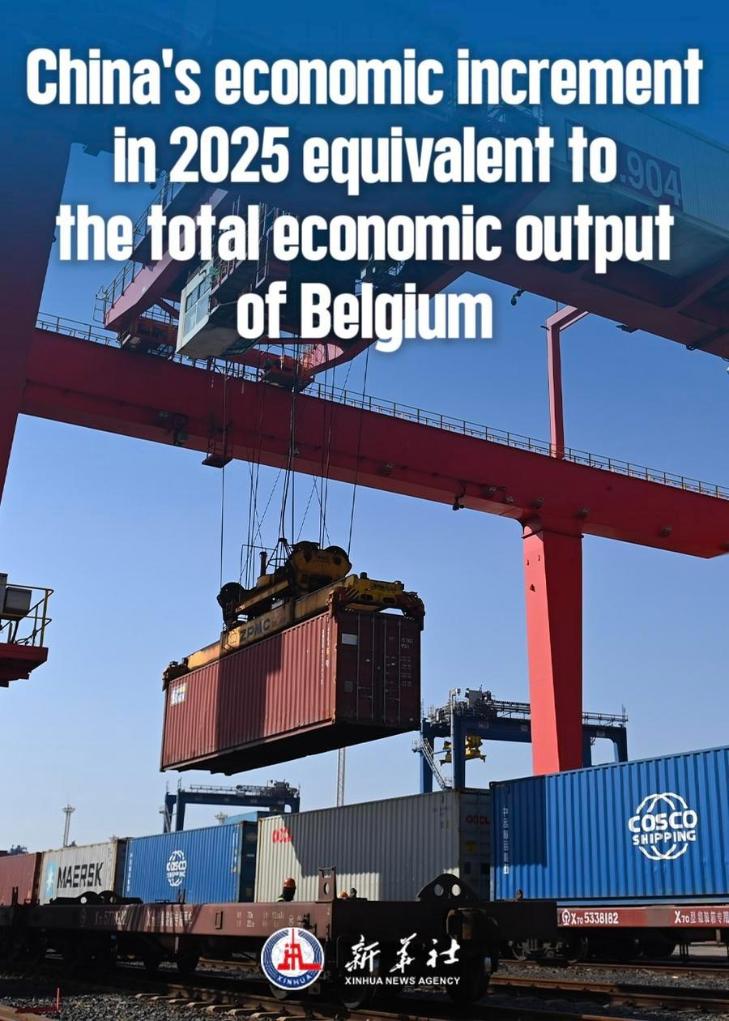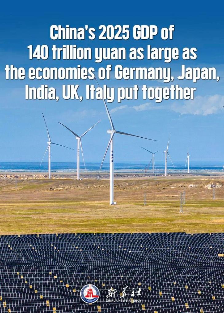 China's economy continued to expand in size. Total GDP surpassed 140 trillion yuan (about 20.16 trillion U.S. dollars) in 2025, equivalent to the combined economies of Germany, Japan, India, Britain and Italy. As a super-large economy, this scale provides China with a solid foundation to withstand risks and maintain long-term positive momentum.
