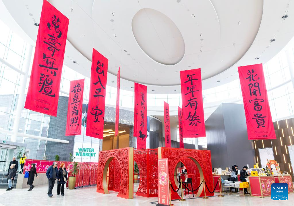 Many shopping malls and supermarkets in Ontario have launched their themed decorations to celebrate the upcoming Chinese New Year of the Horse. (Photo by Zou Zheng/Xinhua)