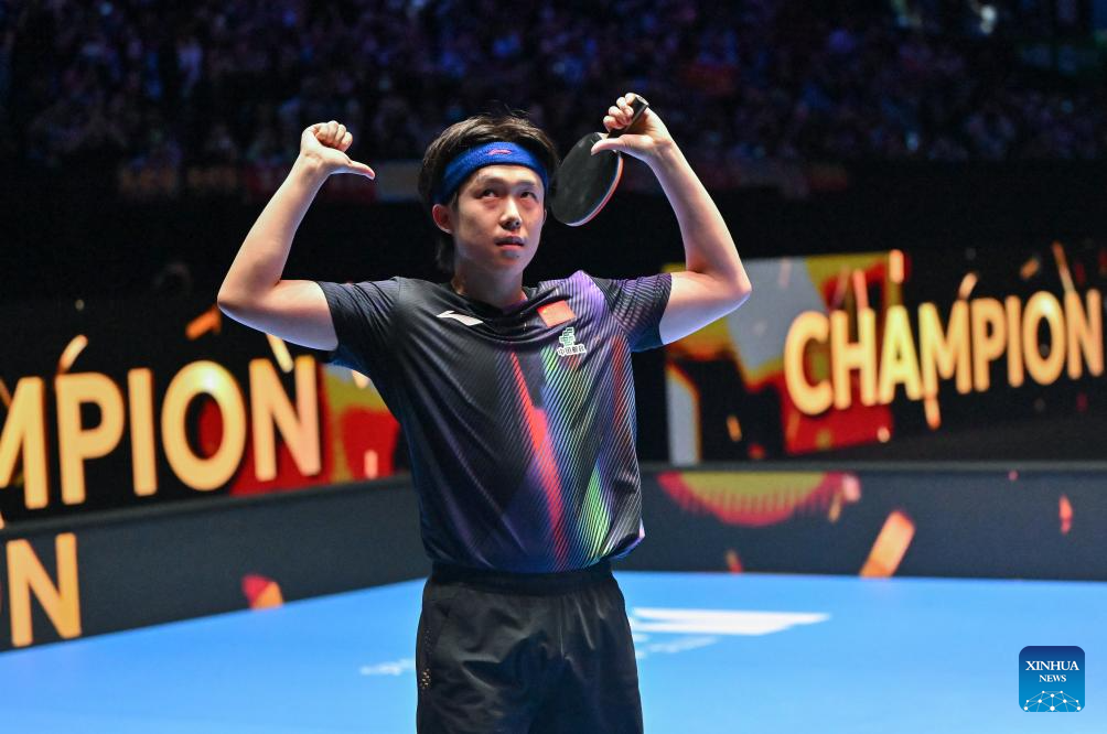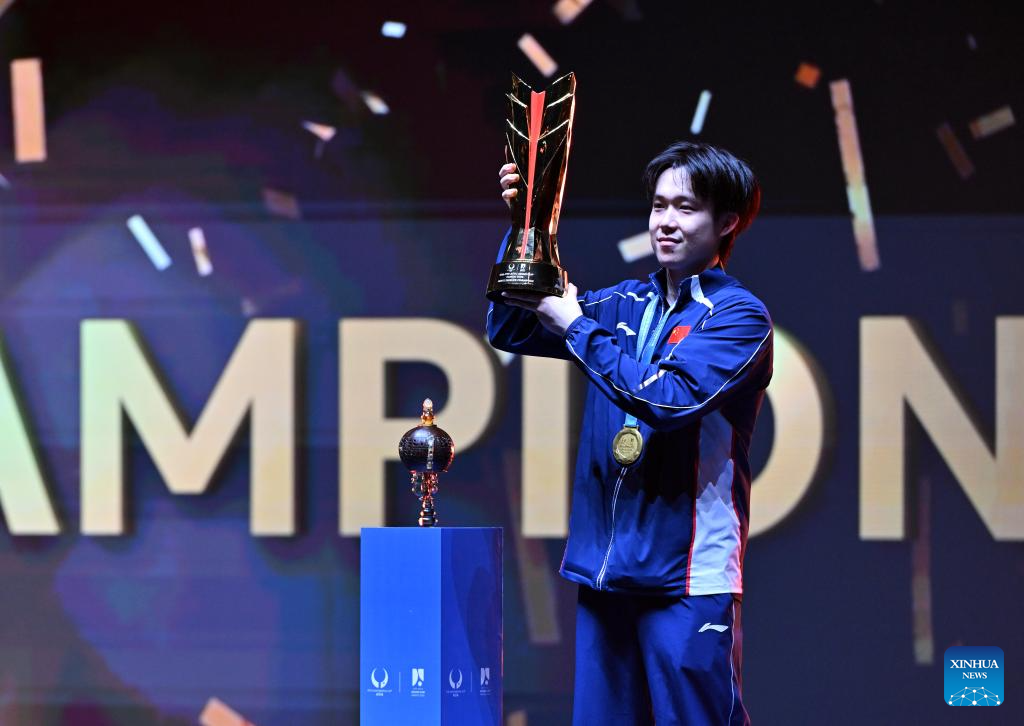 HAIKOU, Feb. 8 (Xinhua) -- Top-ranked Wang Chuqin of China beat Japan's Tomokazu Harimoto 4-2 in the men's singles final to defend his title at the Asian Cup table tennis tournament here on Sunday.