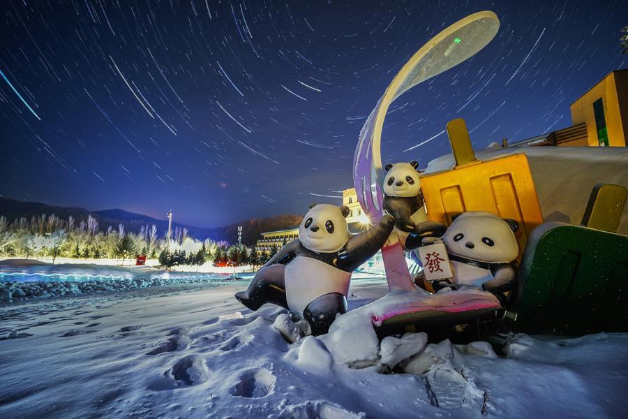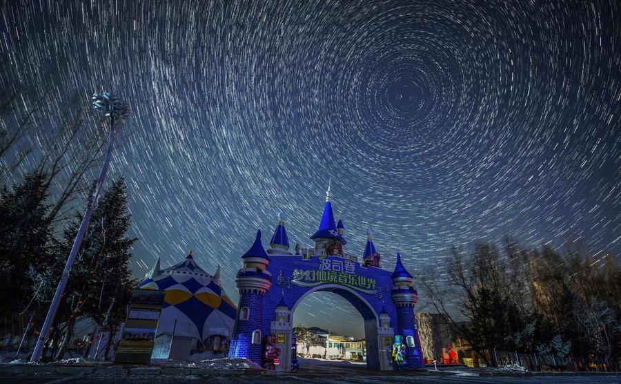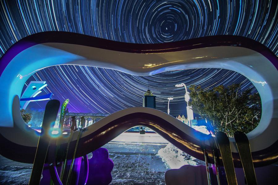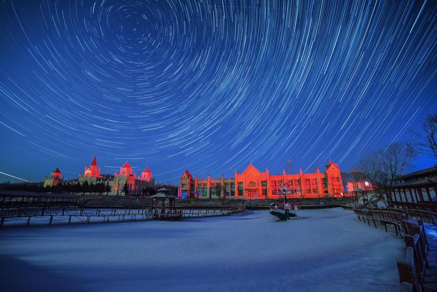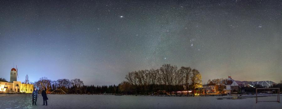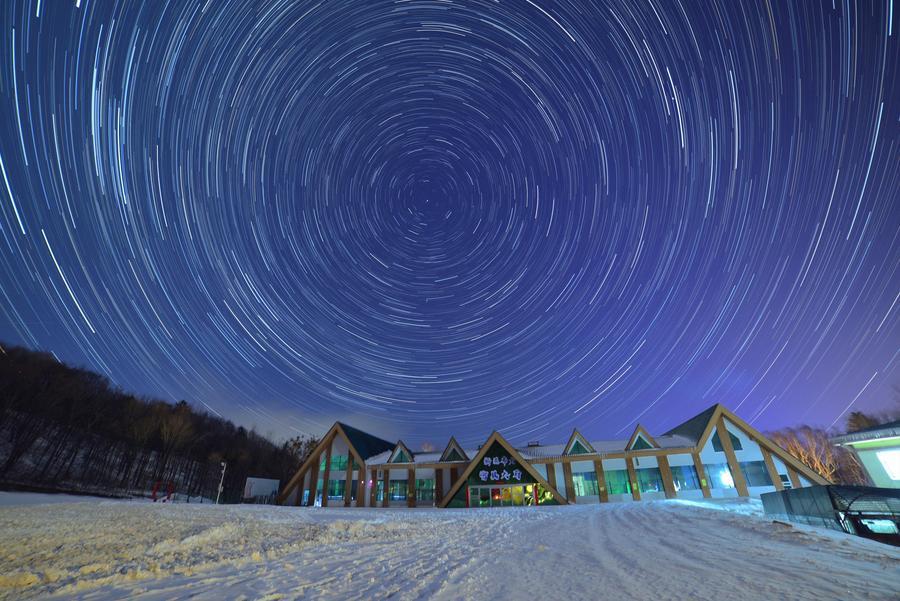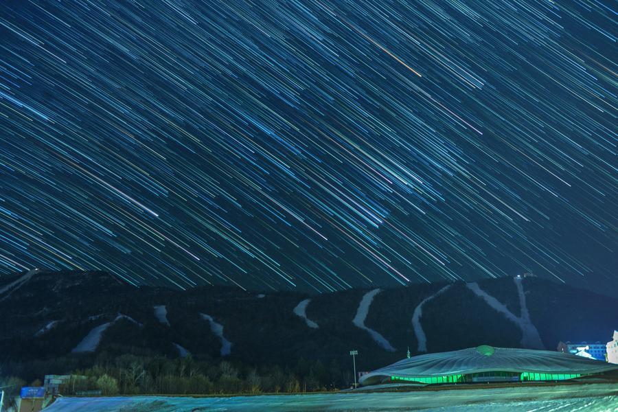Starry sky above Yabuli Ski Resort in NE China's Heilongjiang