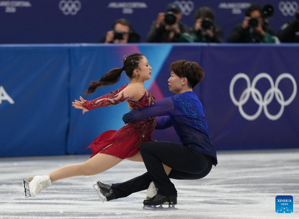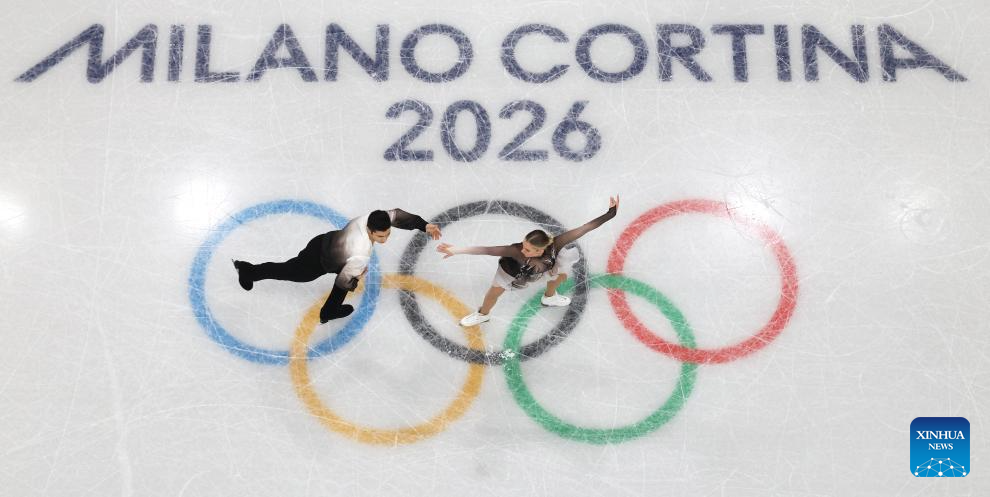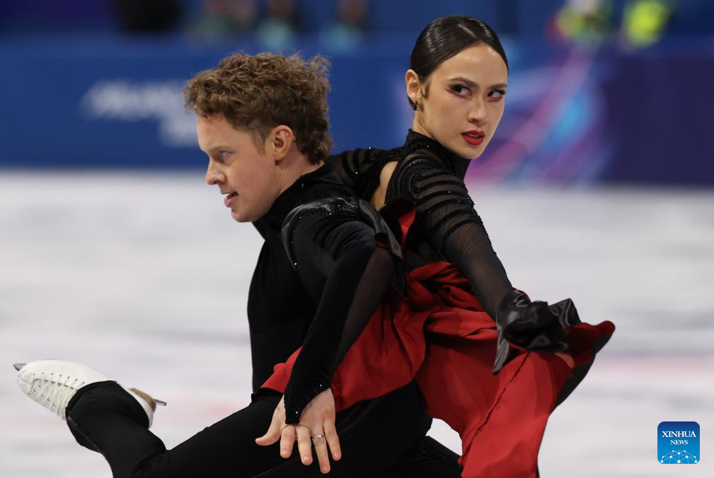 (260208) -- MILAN, Feb. 8, 2026 (Xinhua) -- Marjorie Lajoie (R)/Zachary Lagha of Canada perform during the free dance of ice dance skating for figure skating team event at the Milan-Cortina 2026 Olympic Winter Games in Milan, Italy, Feb. 7, 2026. (Xinhua/Cheng Min)