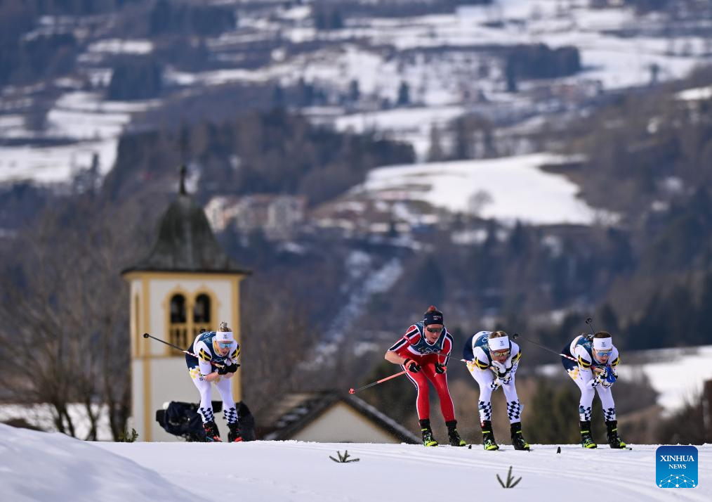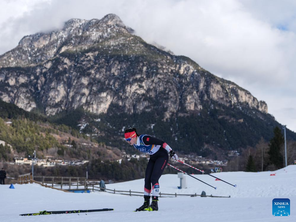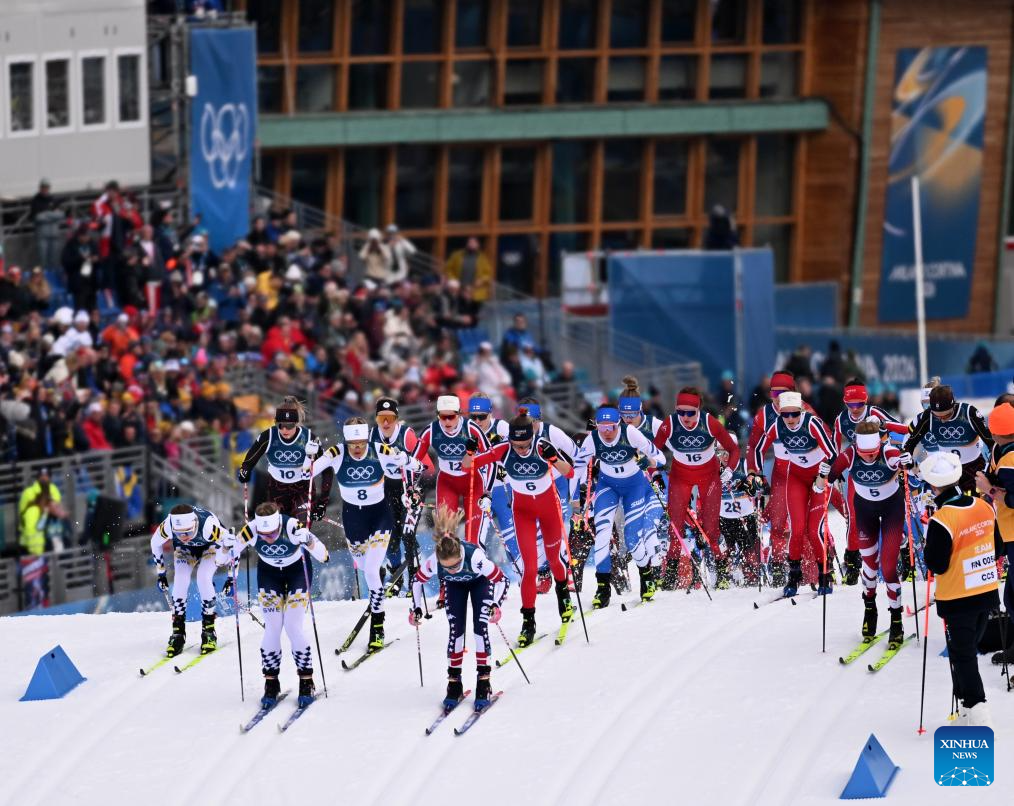 Athletes compete during the Cross-Country Skiing Women's 10km+10km Skiathlon of the Milan-Cortina 2026 Olympic Winter Games in Tesero, Italy, Feb. 7, 2026. (Xinhua/He Canling)