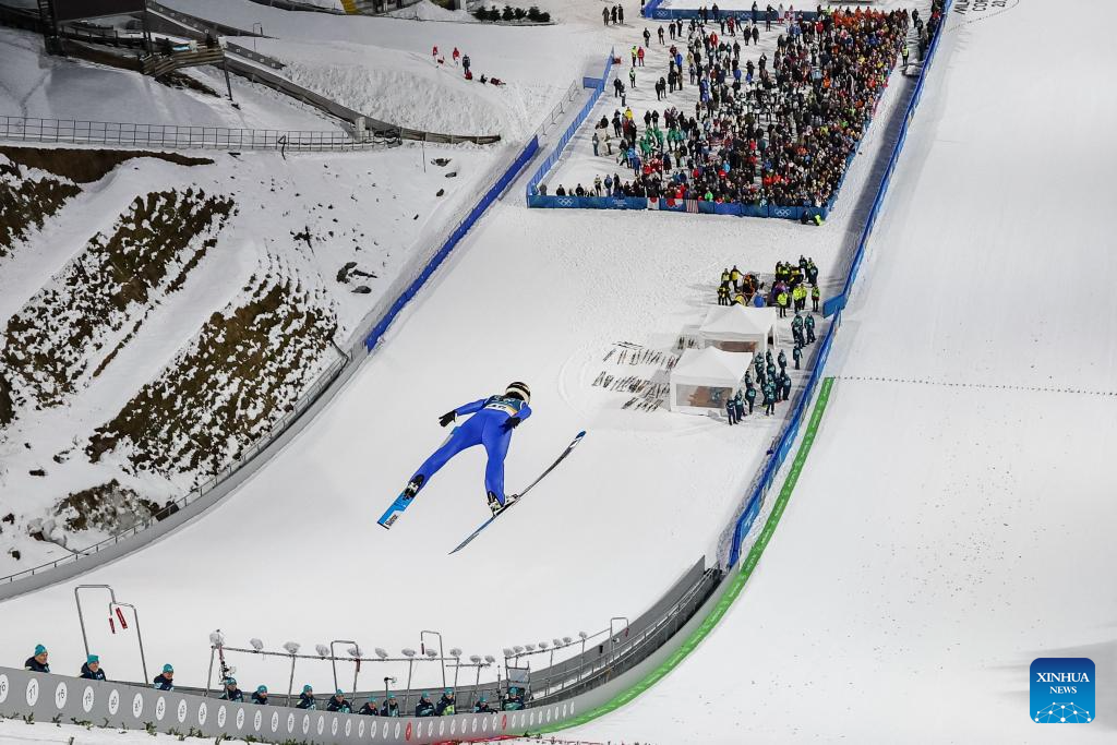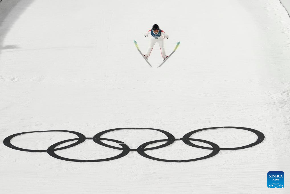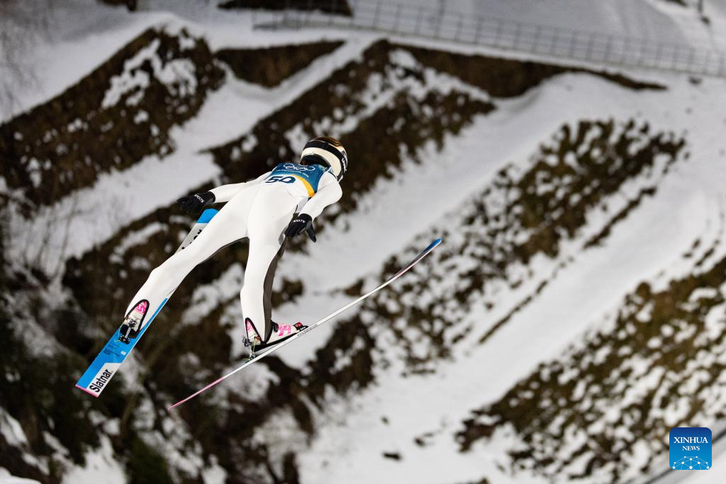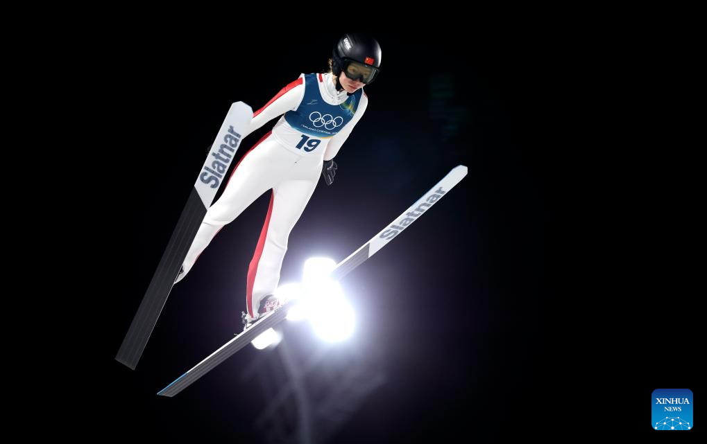 Liu Qi of China competes during the ski jumping women's normal hill individual at the Milan-Cortina 2026 Olympic Winter Games in Predazzo, Italy, Feb. 7, 2026. (Xinhua/Huang Wei)