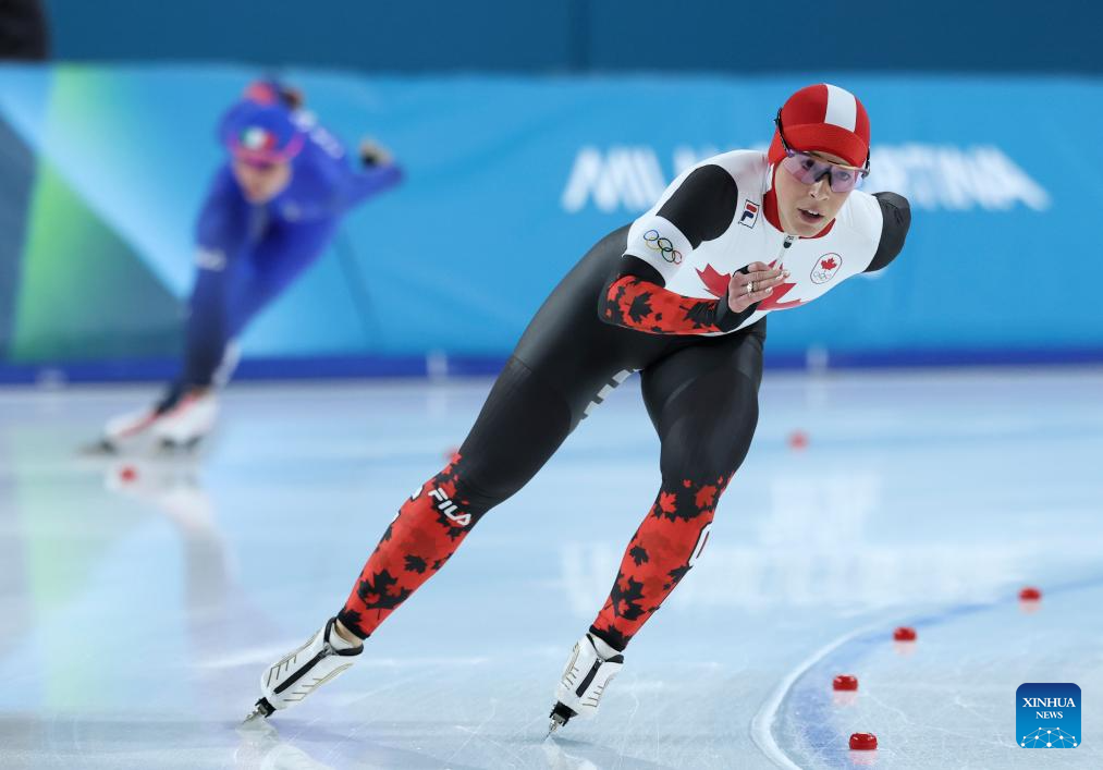 Valerie Maltais of Canada competes during the speed skating women's 3000m final at the Milan-Cortina 2026 Olympic Winter Games in Milan, Italy, Feb. 7, 2026. (Xinhua/Li Jing)