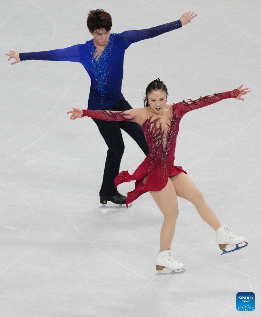 (260208) -- MILAN, Feb. 8, 2026 (Xinhua) -- Yoshida Utana (L)/Morita Masaya of Japan perform during the free dance of ice dance skating for figure skating team event at the Milan-Cortina 2026 Olympic Winter Games in Milan, Italy, Feb. 7, 2026. (Xinhua/Cheng Min)