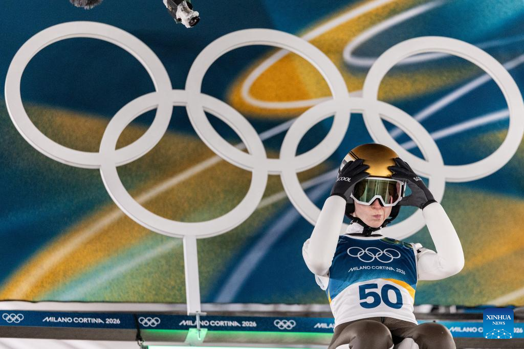 Anna Odine Stroem of Norway competes during the Ski Jumping Women's Normal Hill Individual of the 2026 Milan-Cortina Winter Olympics in Predazzo, Italy, Feb. 7, 2026. (Xinhua/Huang Wei)