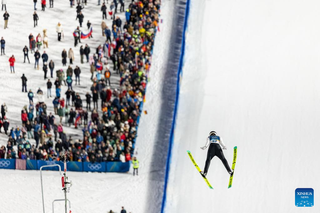 Nika Prevc of Slovenia competes during the Ski Jumping Women's Normal Hill Individual of the 2026 Milan-Cortina Winter Olympics in Predazzo, Italy, Feb. 7, 2026. (Xinhua/Huang Wei)