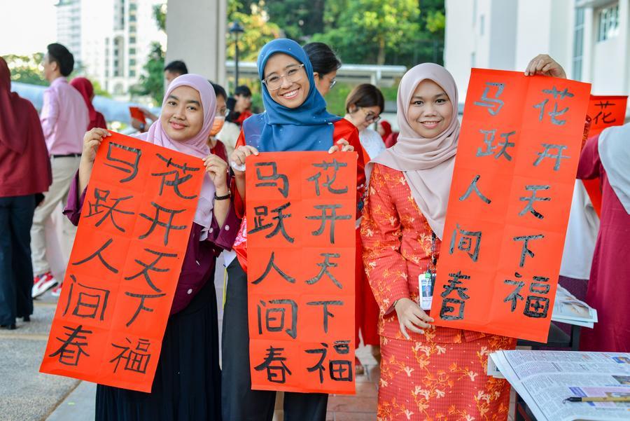 Teachers and students write Spring Festival couplets at a school in Kuala Lumpur, Malaysia, Feb. 7, 2026. (Photo by Chong Voon Chung/Xinhua)Festive decorations are pictured at the Thean Hou Temple in Kuala Lumpur, Malaysia, Feb. 7, 2026. (Photo by Chong Voon Chung/Xinhua)People take photos of festive decorations at the Thean Hou Temple in Kuala Lumpur, Malaysia, Feb. 7, 2026. (Photo by Chong Voon Chung/Xinhua)Festive decorations are pictured at the Thean Hou Temple in Kuala Lumpur, Malaysia, Feb. 7, 2026. (Photo by Chong Voon Chung/Xinhua)■