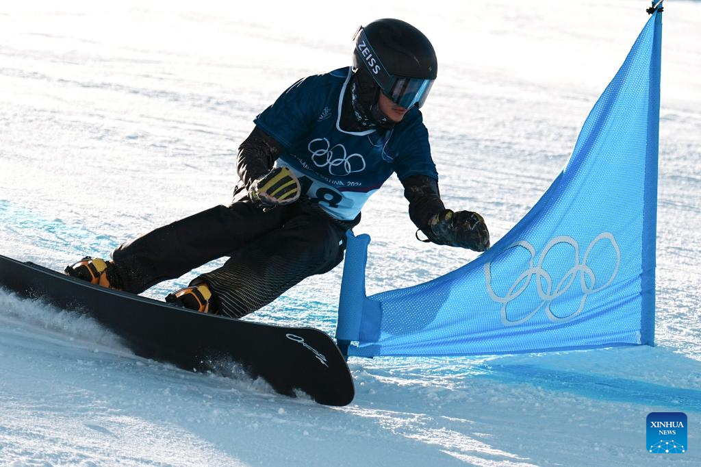Krystof Minarik of the Czech Republic competes during the Snowboard Men's Parallel Giant Slalom Qualification at the Milan-Cortina 2026 Olympic Winter Games in Livigno, Italy, Feb. 8, 2026. (Xinhua/Zhang Hongxiang)