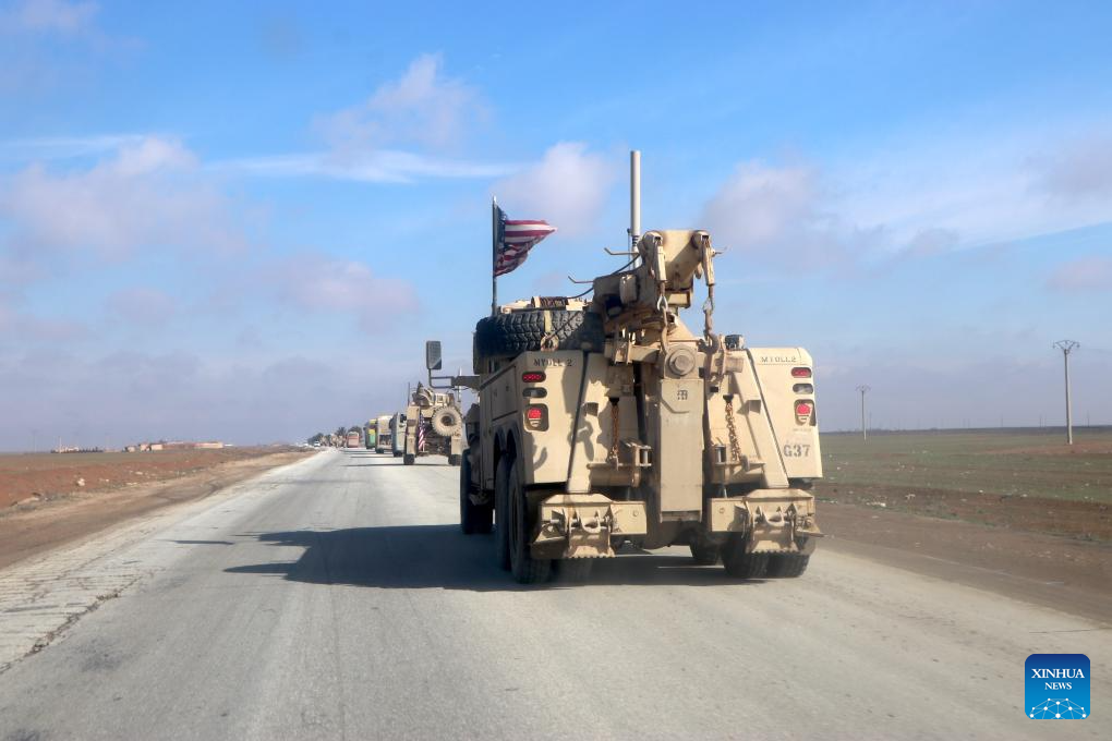 U.S. military vehicles escort passenger buses transporting Islamic State (IS) detainees from northeastern Syria into Iraq on Feb. 8, 2026. Iraq has received 2,250 IS terrorist detainees from Syria and commenced legal classification procedures against them, the Iraqi military said on Feb. 7.