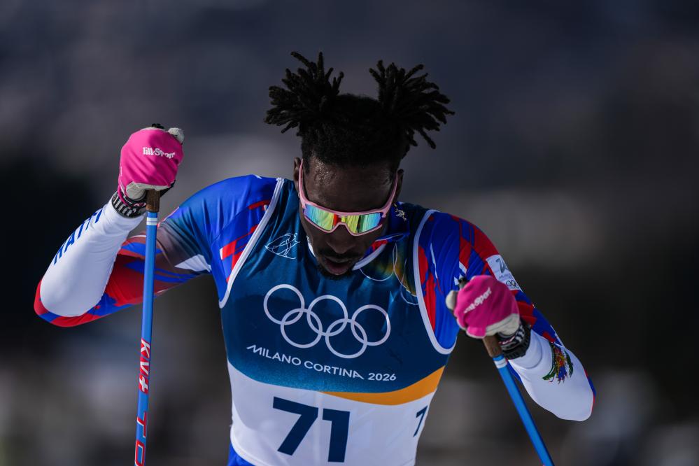 Gold medalist Johannes Hoesflot Klaebo of Norway bites his medal during the awarding ceremony of the cross-country skiing men's 10km+10km skiathlon at the Milan-Cortina 2026 Olympic Winter Games in Tesero, Italy, Feb. 8, 2026. (Xinhua/He Canling)Stevenson Savart of Haiti competes during the cross-country skiing men's 10km+10km skiathlon at the Milan-Cortina 2026 Olympic Winter Games in Tesero, Italy, Feb. 8, 2026. (Xinhua/Peng Ziyang)