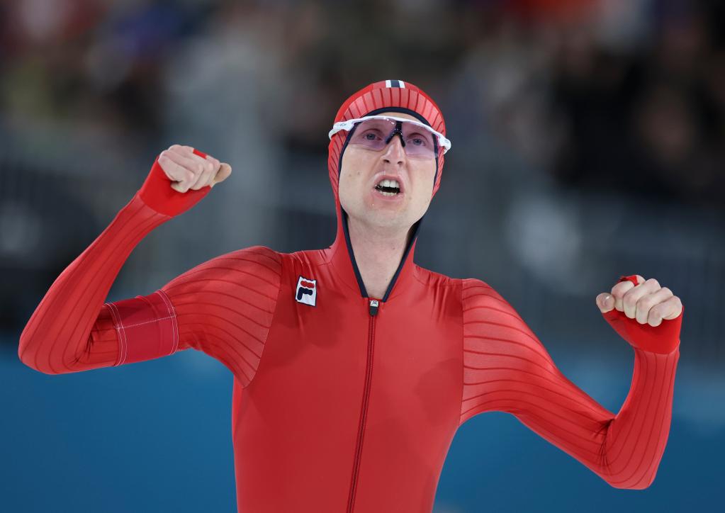 Sander Eitrem of Norway celebrates after the speed skating men's 5000m match at the Milan-Cortina 2026 Olympic Winter Games in Milan, Italy, Feb. 8, 2026. (Xinhua/Li Jing)Sander Eitrem of Norway celebrates after the speed skating men's 5000m match at the Milan-Cortina 2026 Olympic Winter Games in Milan, Italy, Feb. 8, 2026. (Xinhua/Du Xiaoyi)Riccardo Lorello of Italy competes during the speed skating men's 5000m match at the Milan-Cortina 2026 Olympic Winter Games in Milan, Italy, Feb. 8, 2026. (Xinhua/Du Xiaoyi)