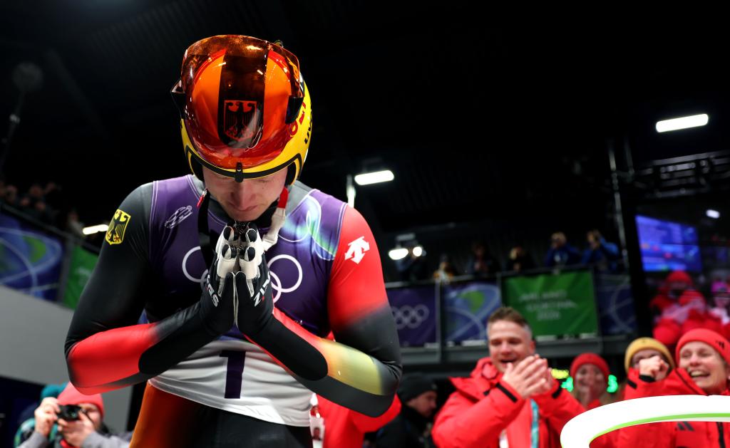 Max Langenhan of Germany celebrates after the luge men's singles match at the Milan-Cortina 2026 Olympic Winter Games in Cortina, Italy, Feb. 8, 2026. (Xinhua/Ding Xu)Max Langenhan of Germany celebrates after the luge men's singles match at the Milan-Cortina 2026 Olympic Winter Games in Cortina, Italy, Feb. 8, 2026. (Xinhua/Ding Xu)