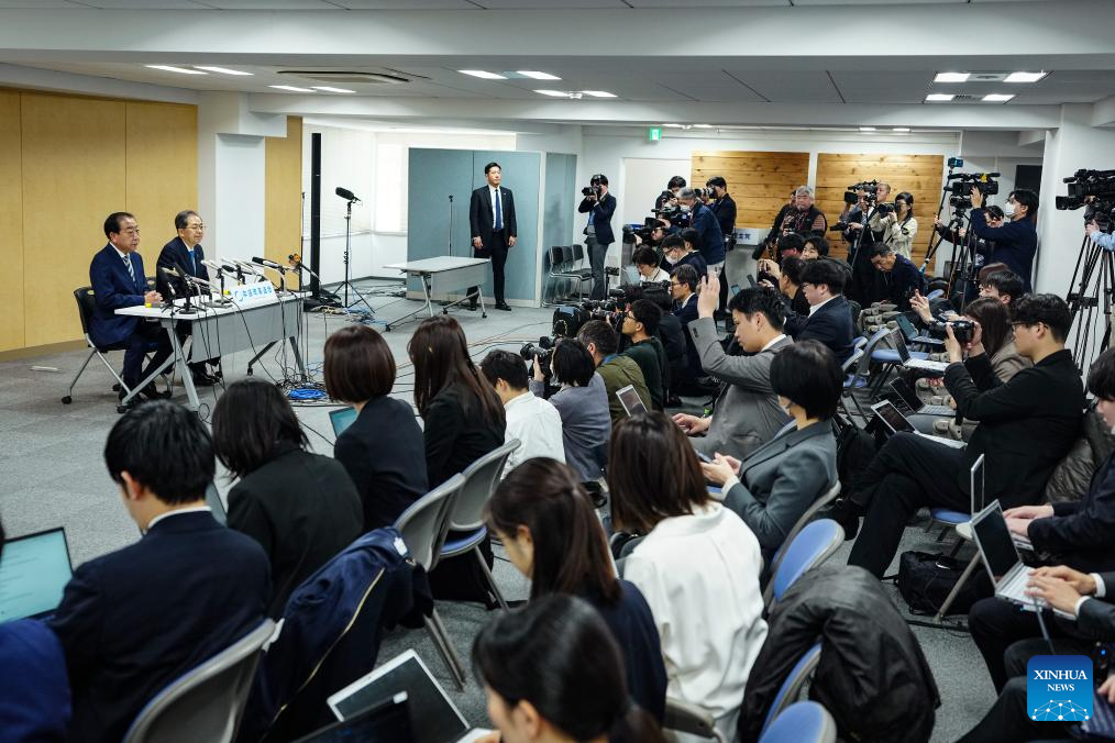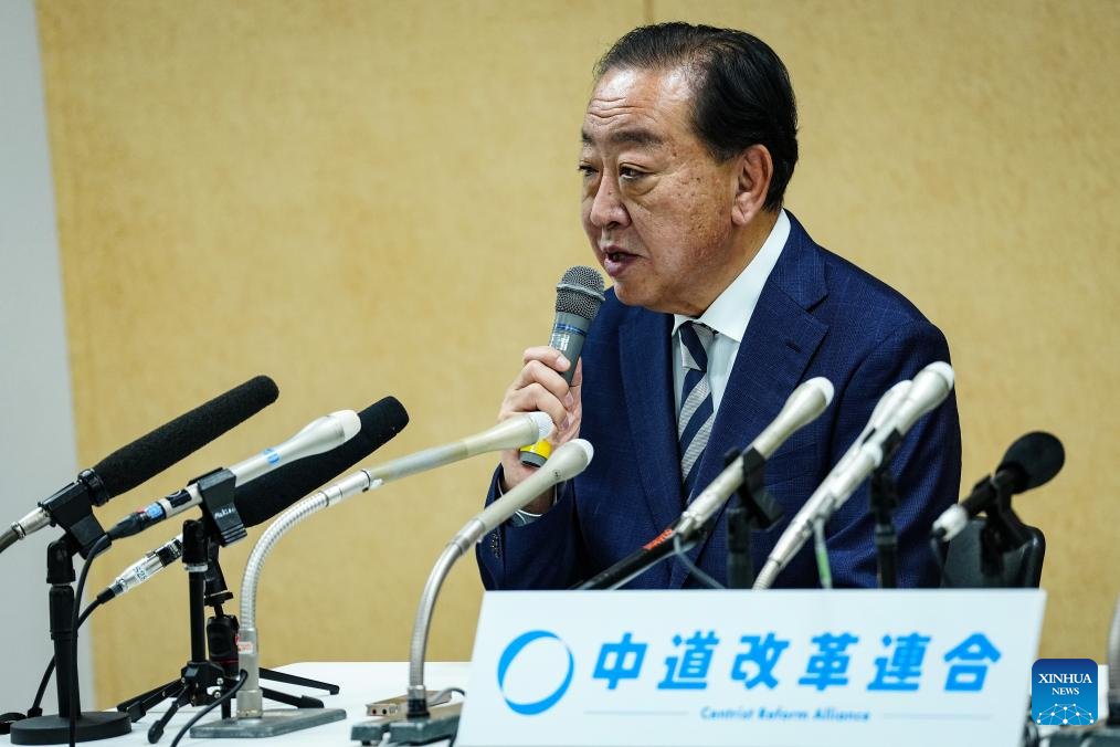 Yoshihiko Noda, co-leader of Japan's main opposition party Centrist Reform Alliance, speaks during a press conference in Tokyo, Japan, Feb. 9, 2026. Yoshihiko Noda and Tetsuo Saito, co-leaders of Japan's main opposition party Centrist Reform Alliance, announced on Monday that they would resign from their posts to take responsibility for the party's defeat in the House of Representatives election. (Xinhua/Jia Haocheng)