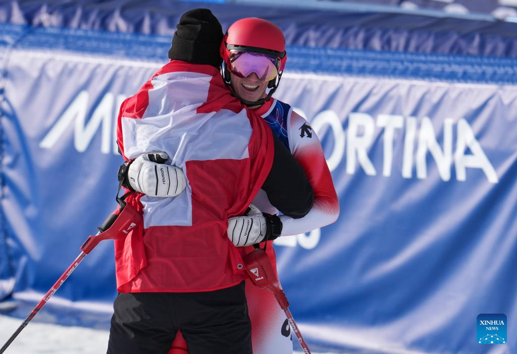BORMIO, Italy, Feb. 9 (Xinhua) -- Franjo von Allmen secured his second gold medal of the Milan-Cortina Winter Games on Monday, leading a Swiss sweep of the opening two men's alpine skiing titles by winning the men's team combined alongside teammate Tanguy Nef.