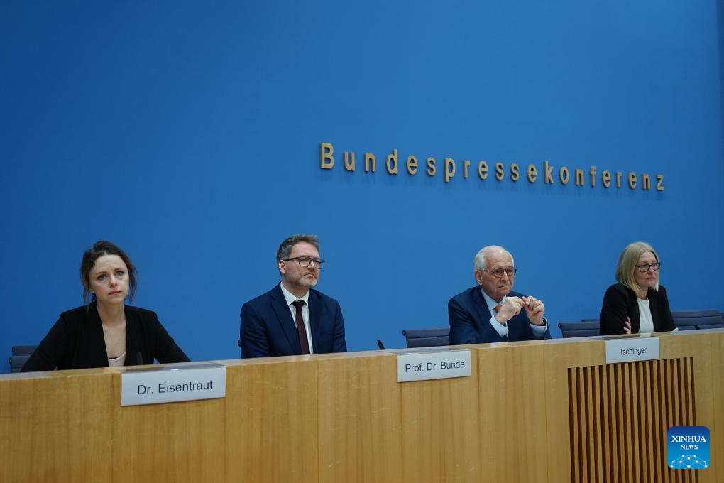 Munich Security Conference Chairman Wolfgang Ischinger (2nd R) participates in the launch event of the Munich Security Report 2026 in Berlin, Germany, Feb. 9, 2026. The world has entered a period of "wrecking-ball politics," where sweeping destruction has become the order of the day, according to the Munich Security Report 2026 released here on Monday. (Xinhua/Li Chao)