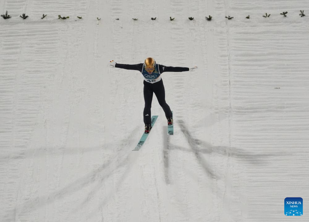 PREDAZZO, Italy, Feb. 9 (Xinhua) -- Philipp Raimund of Germany delivered a sensational final jump to claim gold in the men's normal hill ski jumping competition at the Milan-Cortina Winter Olympics on Monday.