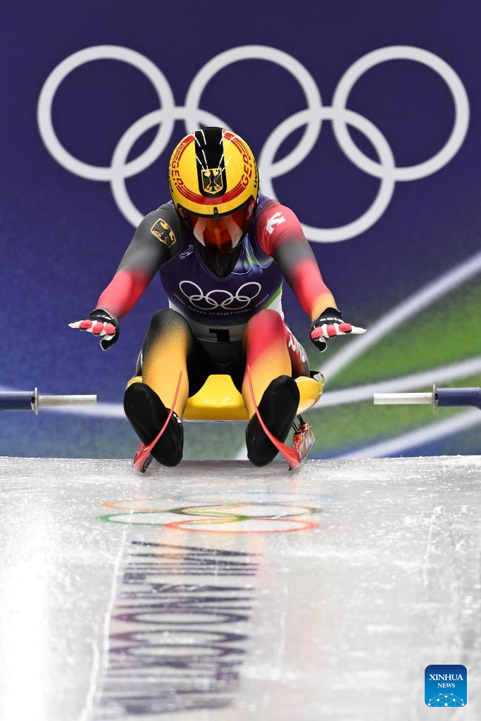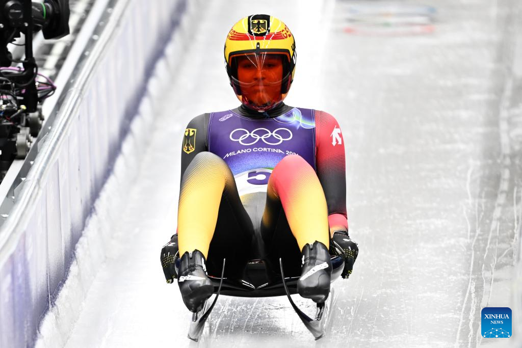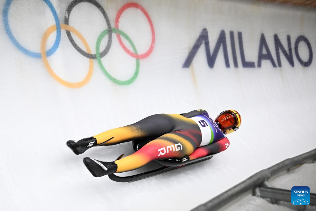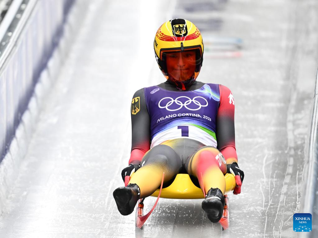 CORTINA D'AMPEZZO, Italy, Feb. 9 (Xinhua) -- Germany's Julia Taubitz and Merle Malou Fraebel led the women's singles luge after the first two runs of the Milan-Cortina Olympic Winter Games here on Monday.
