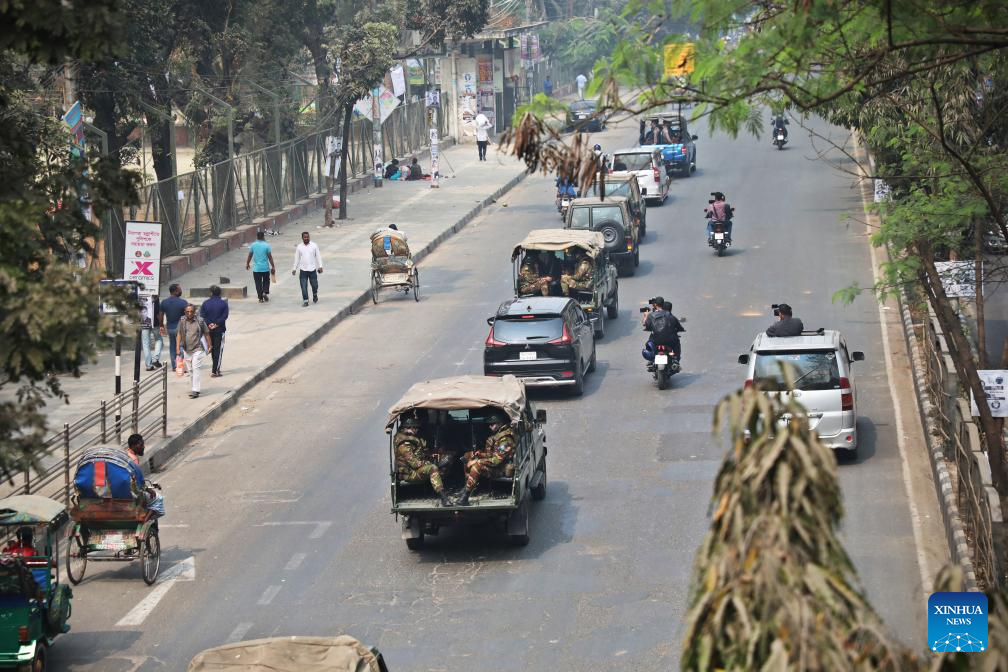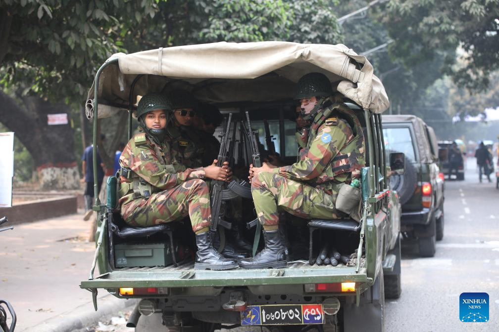 Security forces patrol across polling areas in Dhaka, Bangladesh, on Feb. 10, 2026. (Photo by Habibur Rahman/Xinhua)
