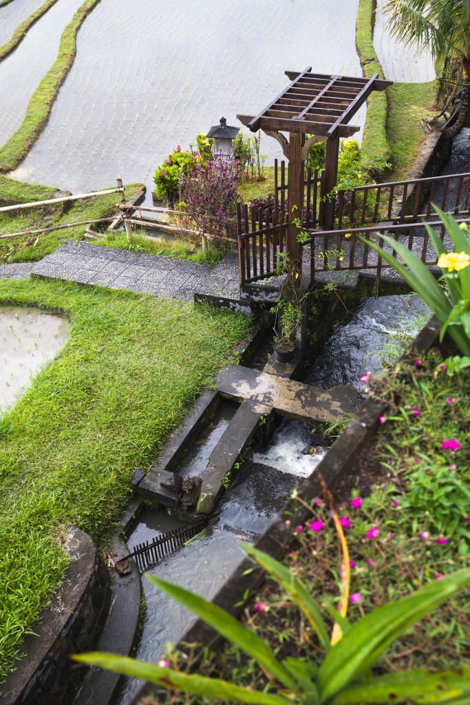 The Subak irrigation system embodies the Balinese philosophical concept of "Tri Hita Karana," which emphasizes harmony among spiritual beliefs, human life and nature. The Balinese regard water as a divine gift and build temples at vital water sources, sluice gates, and field borders to express gratitude and offer prayers.