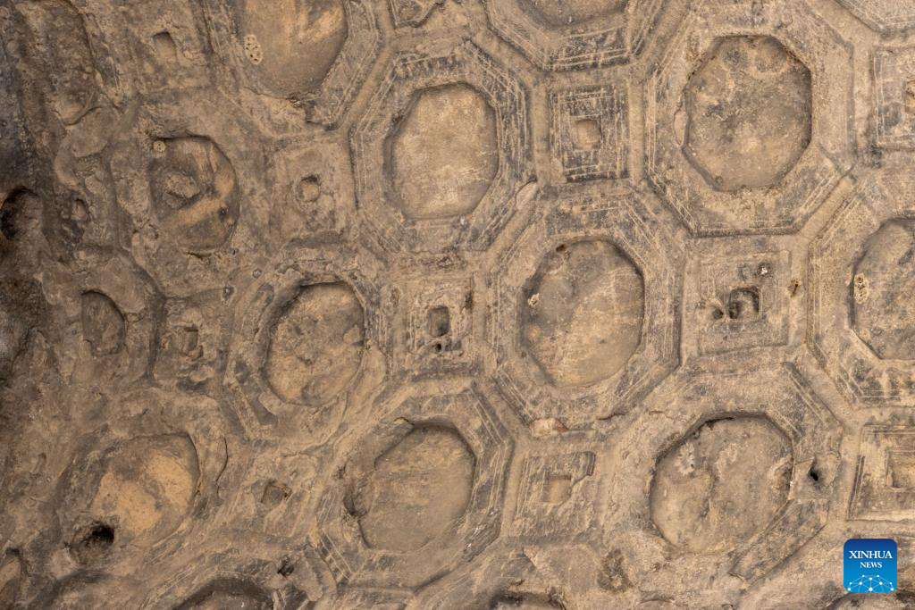 This photo taken on Jan. 30, 2026 shows a decorated cave ceiling at the ruins of the Uplistsikhe rock-hewn city near Gori, Georgia. The Uplistsikhe rock-hewn city ruins is located on a high rocky hill on the bank of the Kura River near Gori in Georgia. It has been on the UNESCO World Heritage Tentative List since 2007. (Xinhua/Chen Junfeng)
