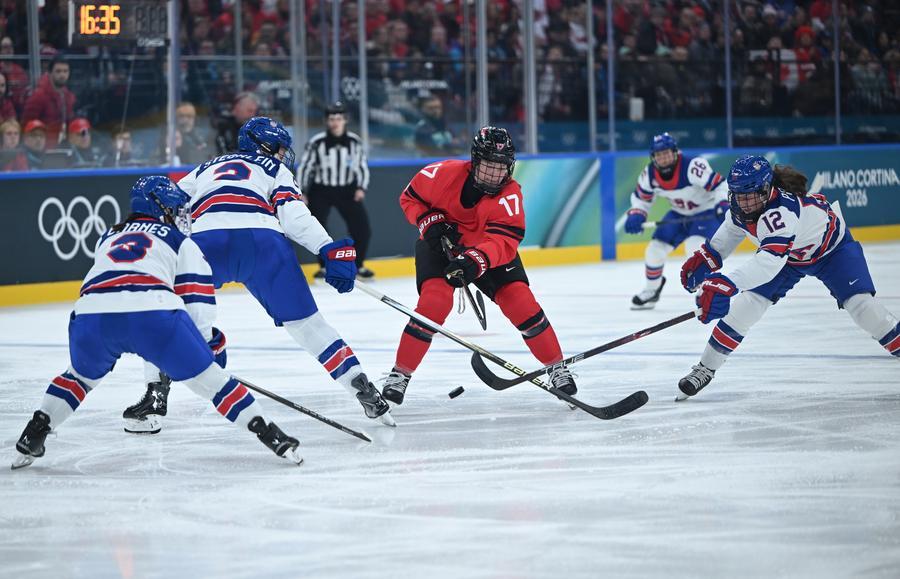 MILAN, Feb. 10 (Xinhua) -- The United States delivered a commanding performance in women's ice hockey at the 2026 Winter Olympics on Tuesday, blanking archrival Canada 5-0 to finish atop Group A with a perfect 4-0 record.