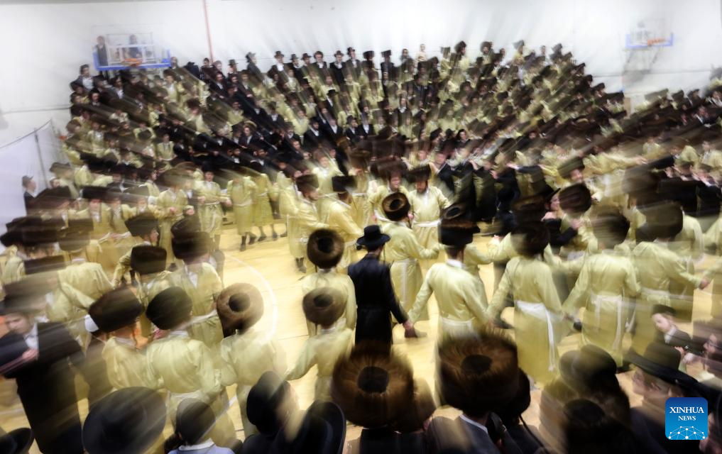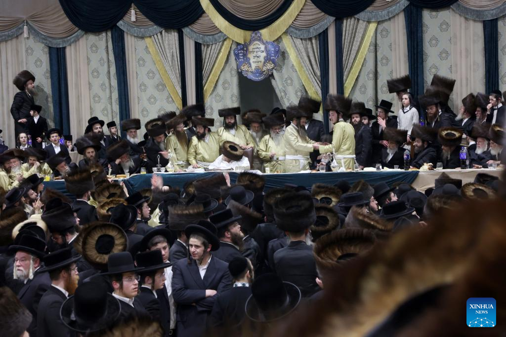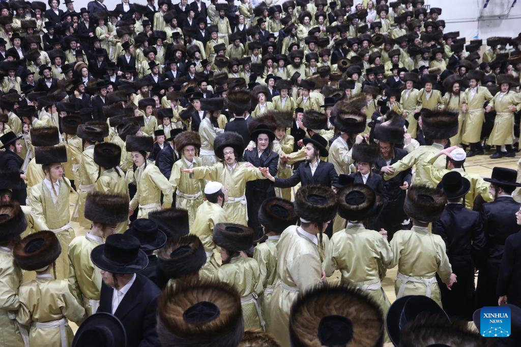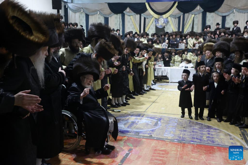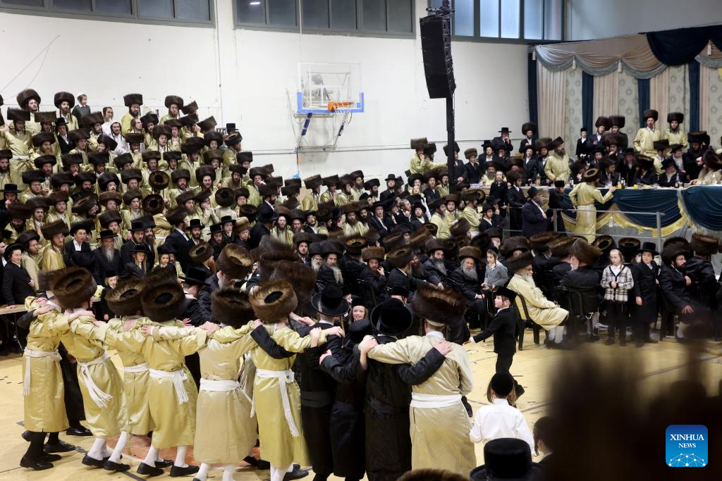 The celebrations, featuring prayers, dancing and traditional rituals, lasted for nearly 12 hours and attended by over 10,000 people, being one of the largest traditional Jewish weddings in recent years. (Photo by Gil Cohen Magen/Xinhua)
