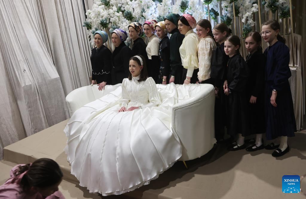 The bride attends a traditional Jewish wedding near Jerusalem, Feb. 9, 2026. A newly-wed Jewish couple celebrated their traditional wedding in a community near Jerusalem from Monday night till Tuesday morning.
