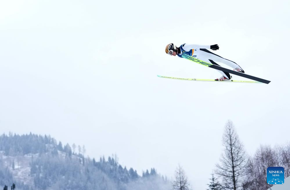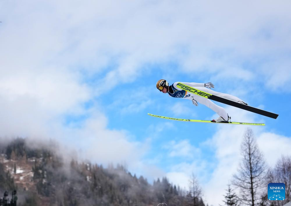 Thomas Rettenegger of Austria competes during the Nordic Combined Individual Gundersen Normal Hill/10km at the 2026 Milan-Cortina Winter Olympics in Predazzo, Italy, Feb. 11, 2026. (Xinhua/Meng Yongmin)
