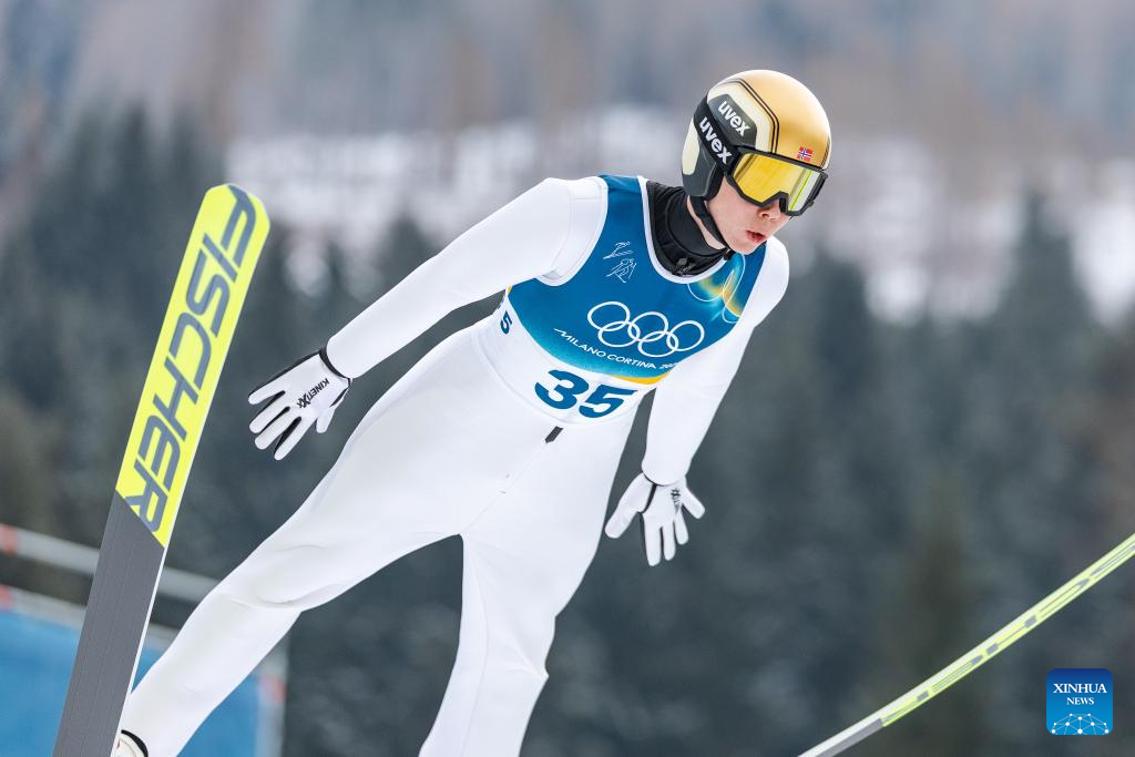 Jens Luraas Oftebro of Norway competes during the Nordic Combined Individual Gundersen Normal Hill/10km at the 2026 Milan-Cortina Winter Olympics in Predazzo, Italy, Feb. 11, 2026. (Xinhua/Huang Wei)
