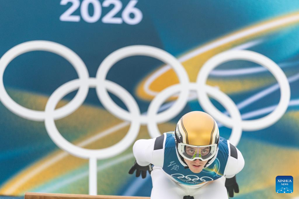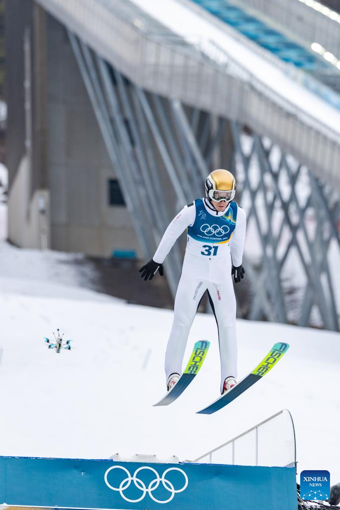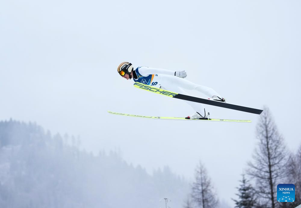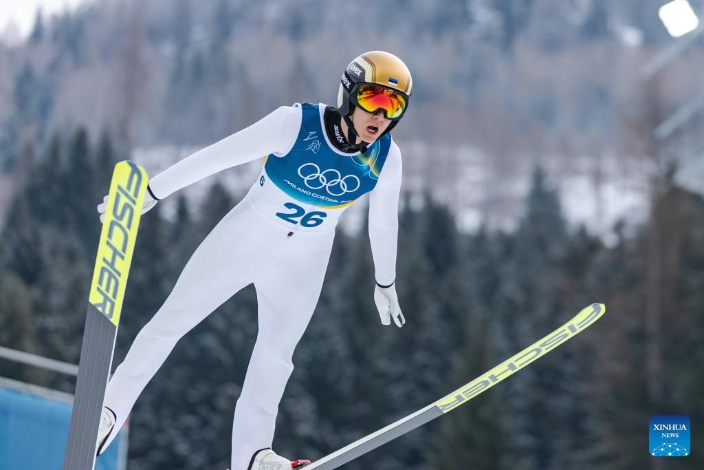 Kristjan Ilves of Estonia competes during the Nordic Combined Individual Gundersen Normal Hill/10km at the 2026 Milan-Cortina Winter Olympics in Predazzo, Italy, Feb. 11, 2026. (Xinhua/Meng Yongmin)