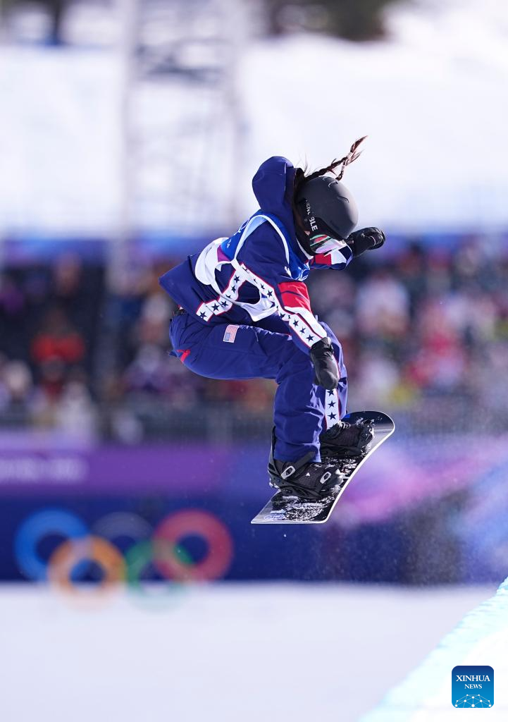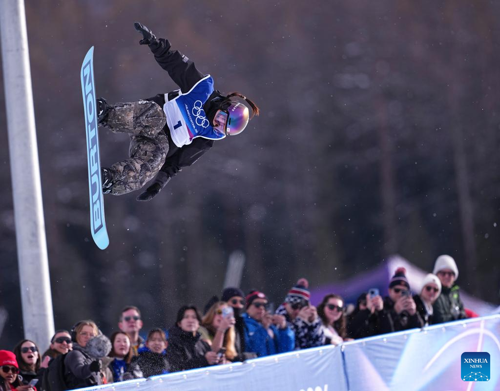 Chloe Kim of the United States competes during the snowboard women's halfpipe qualification at the Milan-Cortina 2026 Olympic Winter Games in Livigno, Italy, Feb. 11, 2026. (Xinhua/Wu Huiwo)