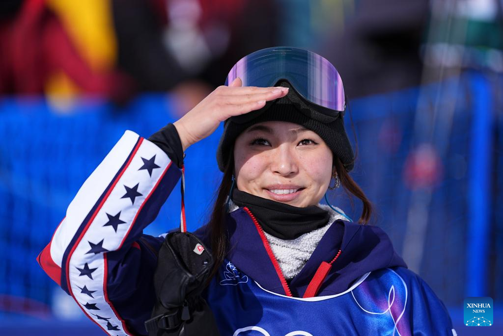 Chloe Kim of the United States reacts during the snowboard women's halfpipe qualification at the Milan-Cortina 2026 Olympic Winter Games in Livigno, Italy, Feb. 11, 2026. (Xinhua/Wu Huiwo)