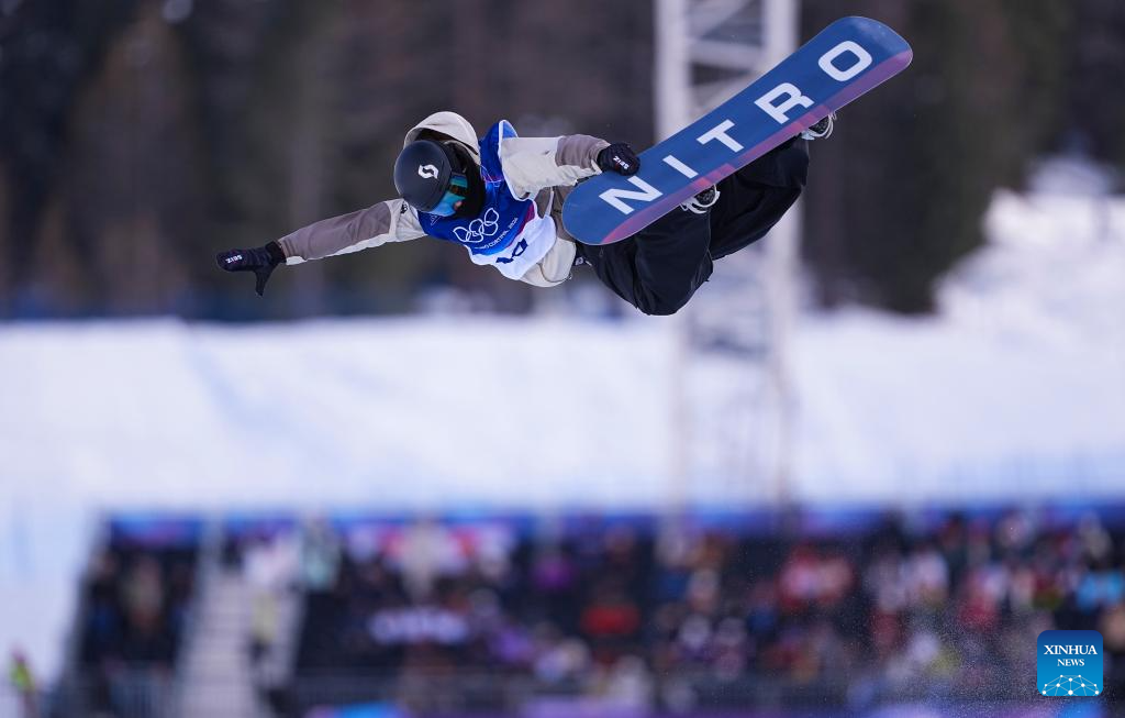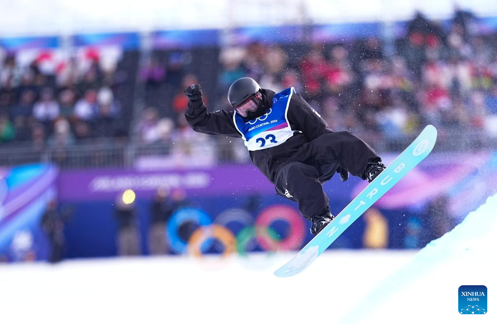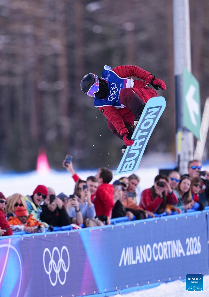 Cai Xuetong of China competes during the snowboard women's halfpipe qualification at the Milan-Cortina 2026 Olympic Winter Games in Livigno, Italy, Feb. 11, 2026. (Xinhua/Wu Huiwo)