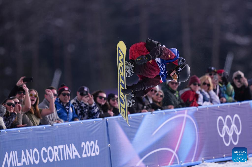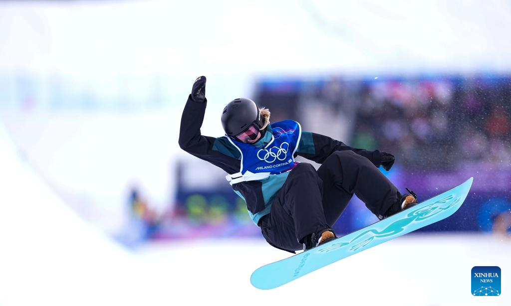 Queralt Castellet Ibanez of Spain during the snowboard women's halfpipe qualification at the Milan-Cortina 2026 Olympic Winter Games in Livigno, Italy, Feb. 11, 2026. (Xinhua/Wu Huiwo)