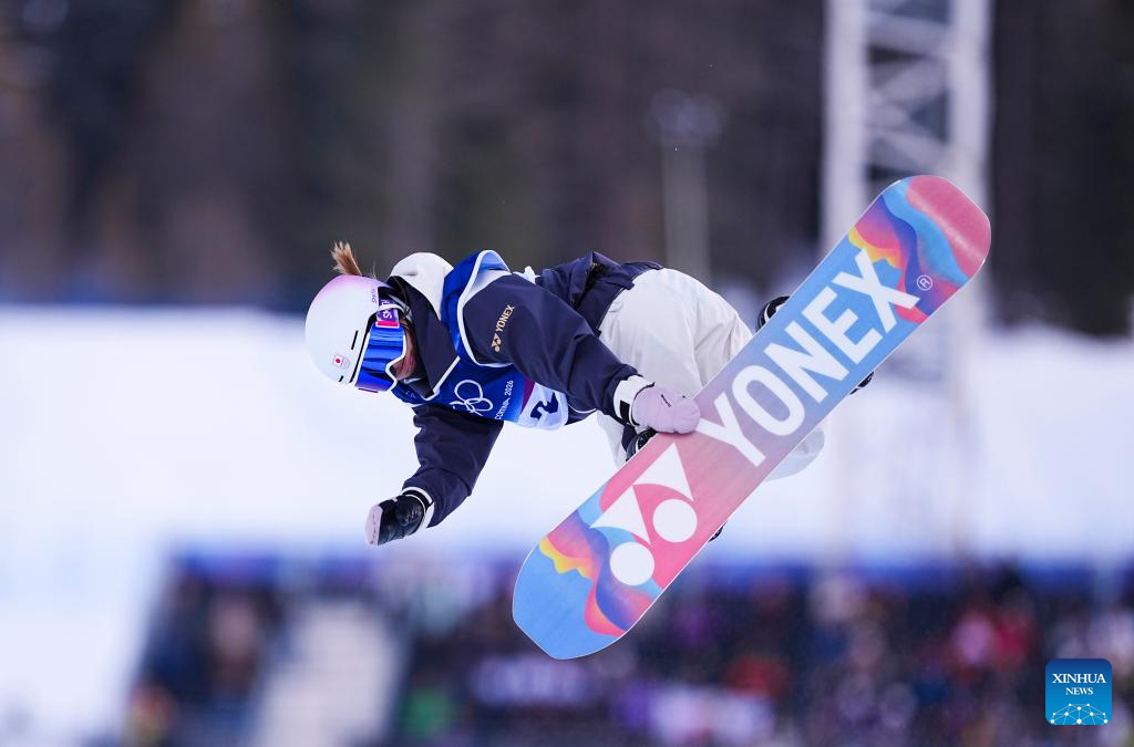 Tomita Sena of Japan competes during the snowboard women's halfpipe qualification at the Milan-Cortina 2026 Olympic Winter Games in Livigno, Italy, Feb. 11, 2026. (Xinhua/Wu Huiwo)