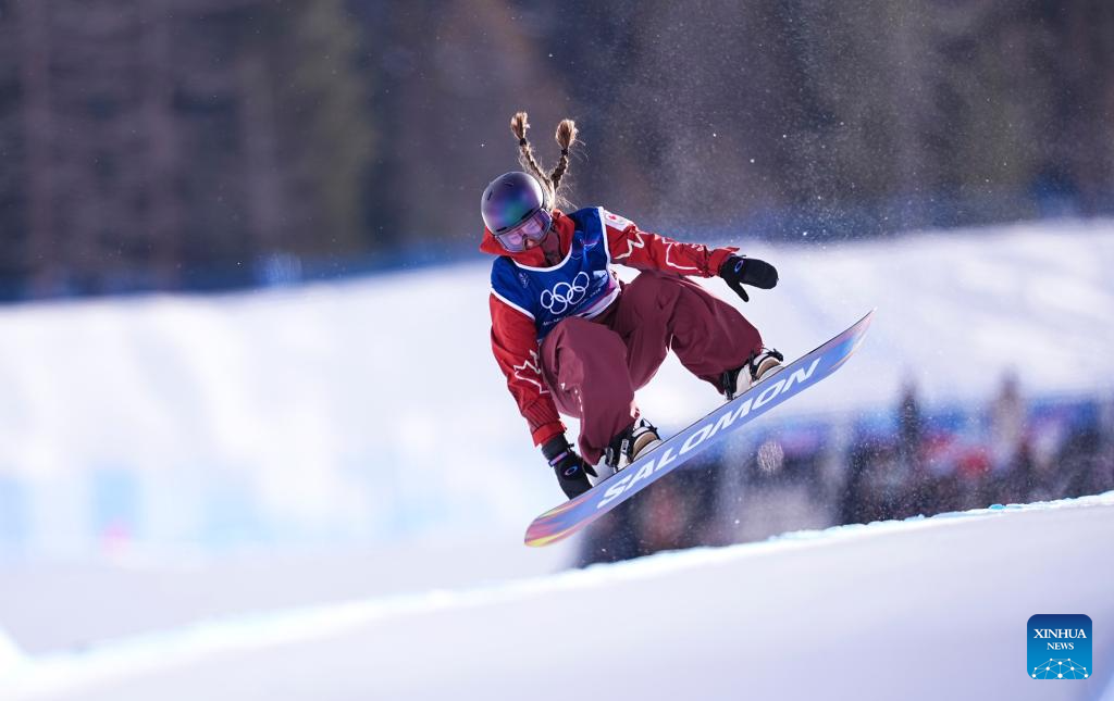 Felicity Geremia of Canada competes during the snowboard women's halfpipe qualification at the Milan-Cortina 2026 Olympic Winter Games in Livigno, Italy, Feb. 11, 2026. (Xinhua/Wu Huiwo)