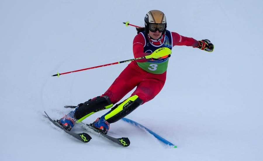 Gold medalists Ariane Raedler (L) and Katharina Huber of Austria pose for photos during the awarding ceremony of the alpine skiing women's team combined at the Milan-Cortina 2026 Olympic Winter Games in Cortina, Italy, Feb. 10, 2026. (Xinhua/Fei Maohua)Ariane Raedler of Austria competes during the downhill race of the alpine skiing women's team combined at the Milan-Cortina 2026 Olympic Winter Games in Cortina, Italy, Feb. 10, 2026. (Xinhua/Fei Maohua)Katharina Huber of Austria competes during the slalom of the alpine skiing women's team combined at the Milan-Cortina 2026 Olympic Winter Games in Cortina, Italy, Feb. 10, 2026. (Xinhua/Fei Maohua)