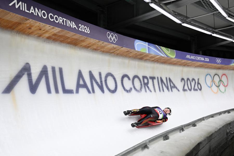 Wang Peixuan of China celebrates during the luge women's singles run 3 at the Milan-Cortina 2026 Olympic Winter Games in Cortina, Italy, Feb. 10, 2026. (Xinhua/Lian Yi)Wang Peixuan of China competes during the luge women's singles run 2 at the Milan-Cortina 2026 Olympic Winter Games in Cortina, Italy, Feb. 9, 2026. (Xinhua/Lian Yi)