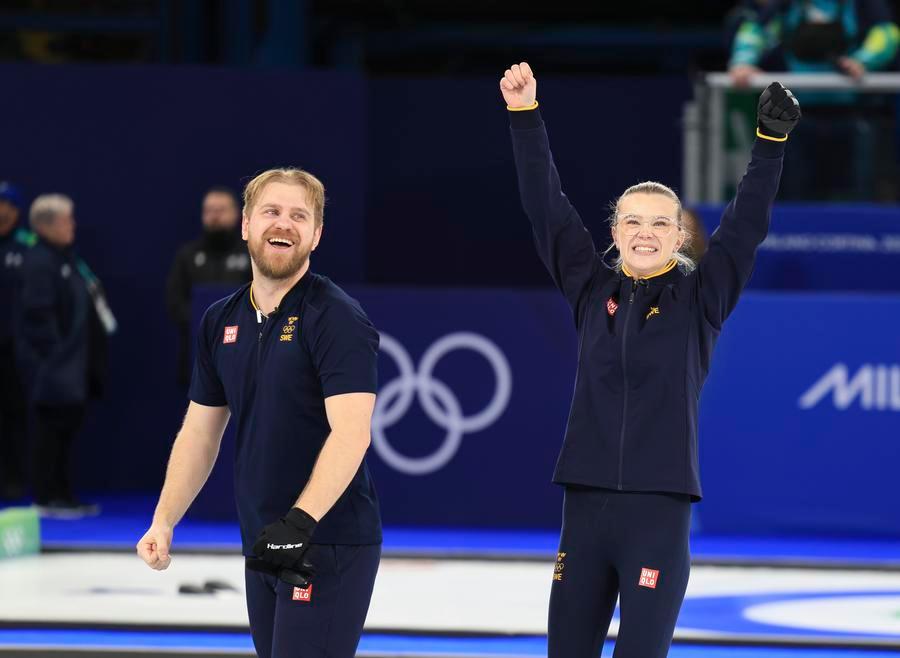 Rasmus Wranaa (R) and Isabella Wranaa of Sweden bite their medals during the awarding ceremony of the curling mixed doubles at the Milan-Cortina 2026 Olympic Winter Games in Cortina, Italy, Feb. 10, 2026. (Xinhua/Ding Xu)Rasmus Wranaa of Sweden competes during the curling mixed doubles gold medal match between Sweden and the United States at the Milan-Cortina 2026 Olympic Winter Games in Cortina, Italy, Feb. 10, 2026. (Xinhua/Ding Xu)Rasmus Wranaa (L) and Isabella Wranaa of Sweden celebrate after the curling mixed doubles gold medal match between Sweden and the United States at the Milan-Cortina 2026 Olympic Winter Games in Cortina, Italy, Feb. 10, 2026. (Xinhua/Ding Xu)■