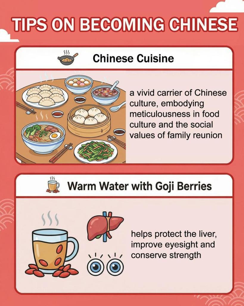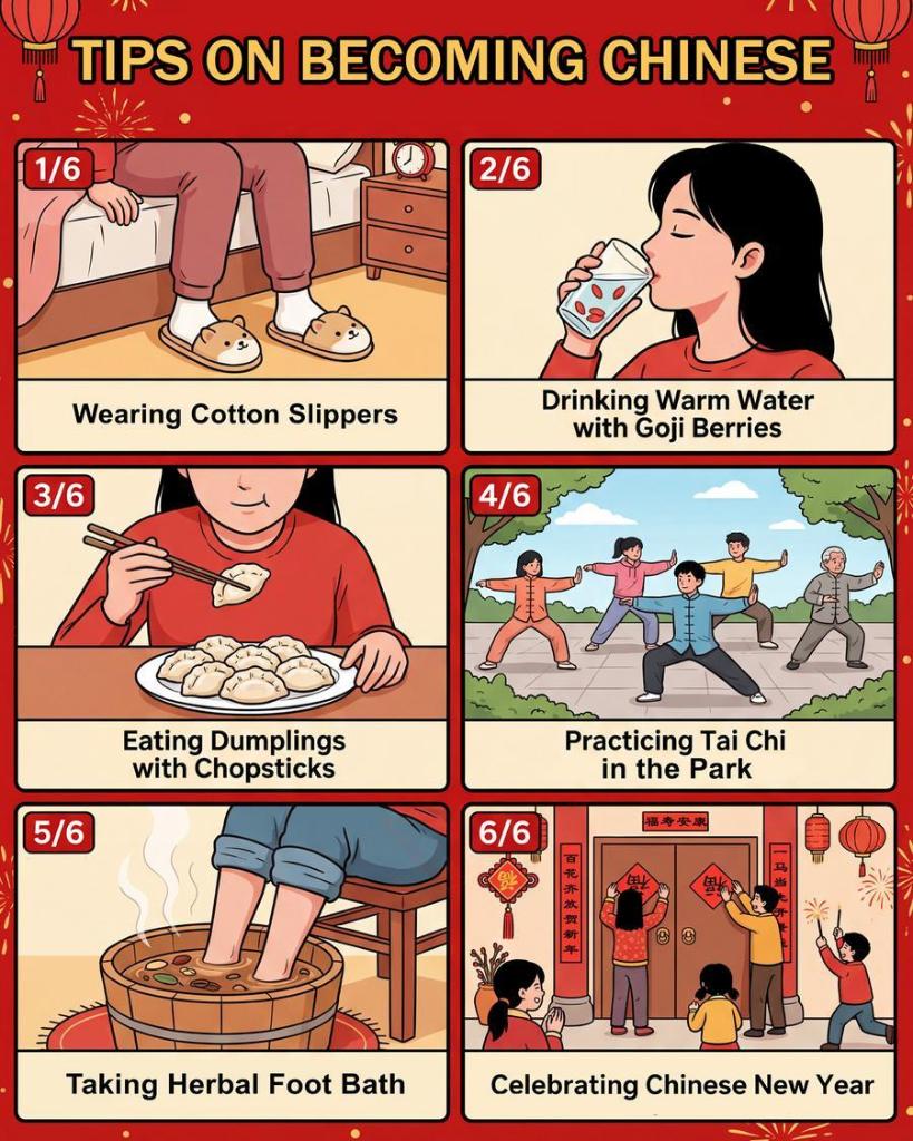 BEIJING, Feb. 11 (Xinhua) -- The buzzword "Becoming Chinese" and videos showing Chinese lifestyle practices are trending across social media. From drinking warm water infused with goji berries and practicing Tai Chi, to cooking authentic Chinese cuisine and taking foot baths, people around the world are increasingly embracing the Chinese lifestyle. More than a trend toward wellness, this reflects a global appreciation of China's traditional wisdom.