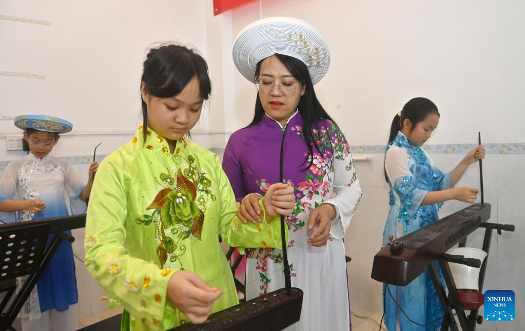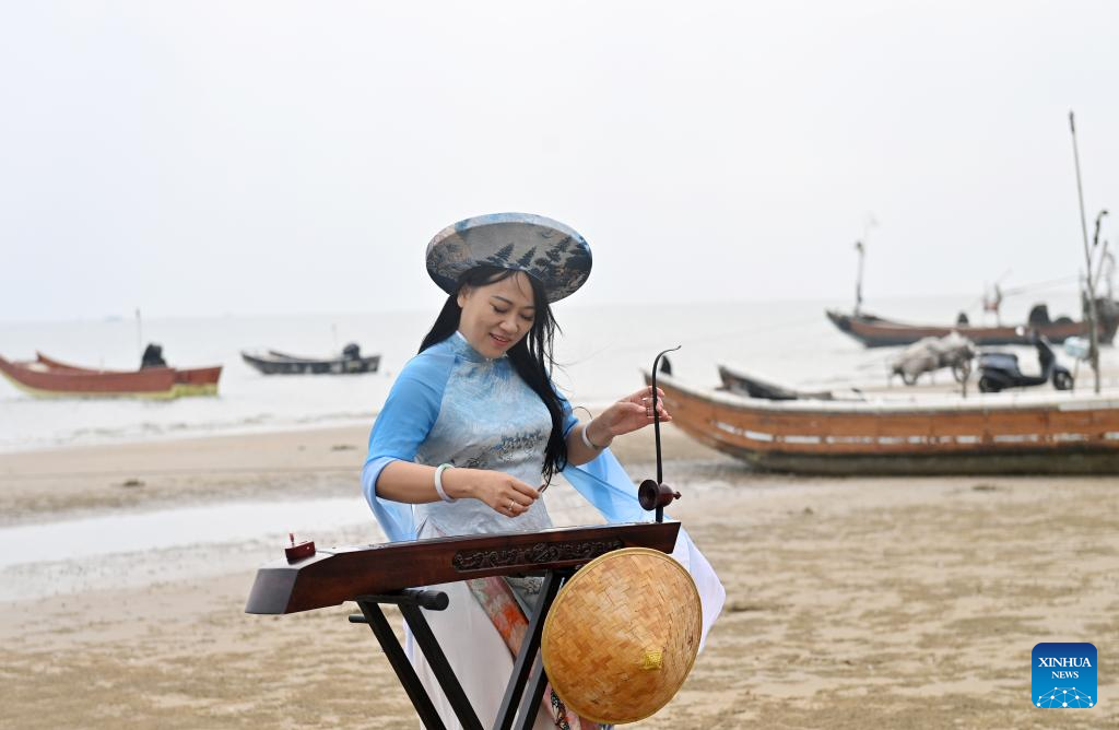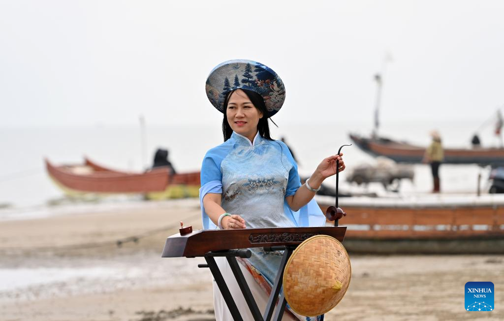 In 2023, after becoming a member of the National Committee of the Chinese People's Political Consultative Conference, Su Haizhen felt a stronger sense of mission and responsibility to preserve and promote China's traditional culture. While advocating for Duxianqin education in schools, she has been exploring ways to further highlight the cultural appeal of the art. Leveraging Dongxing's geographical proximity to Vietnam, she aims to foster deeper cultural exchanges and cooperation between China and ASEAN countries like Vietnam. (Xinhua/Lu Boan)